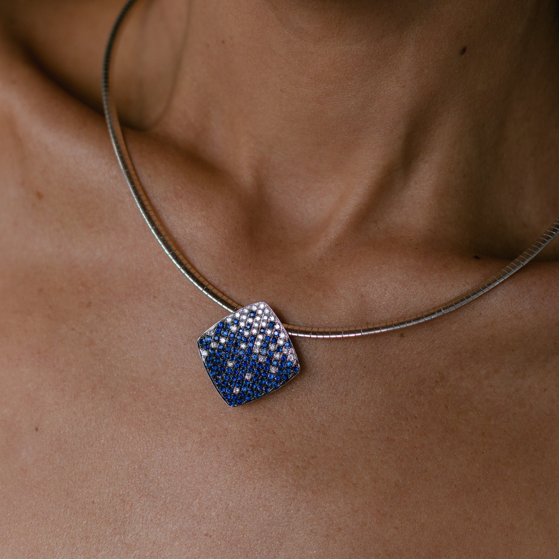 This piece will glide beautifully onto an omega necklace for maximum visibility. Or dress her down with a simple cable chain.