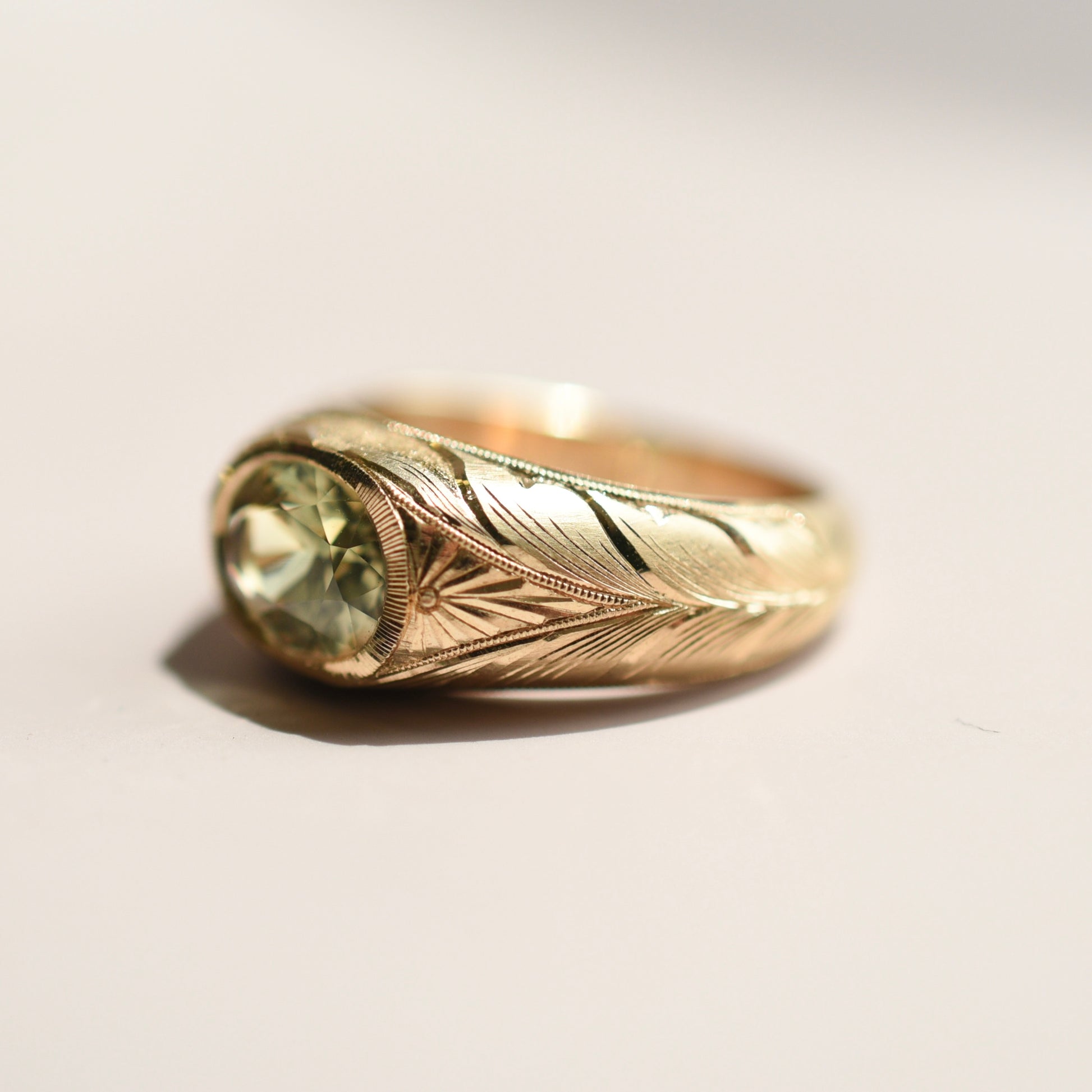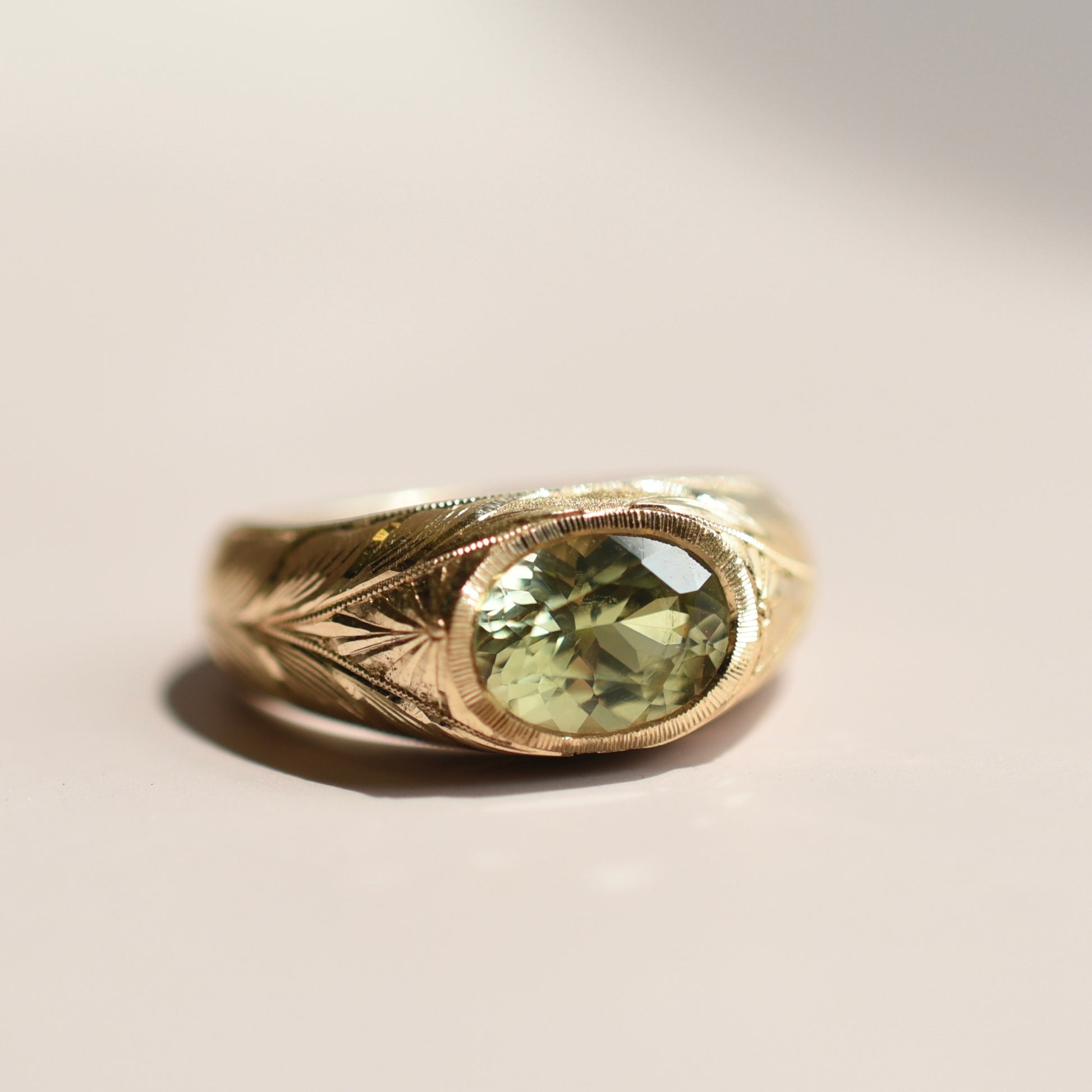 Materials- 14k Yellow Gold, Green Montana Sapphire