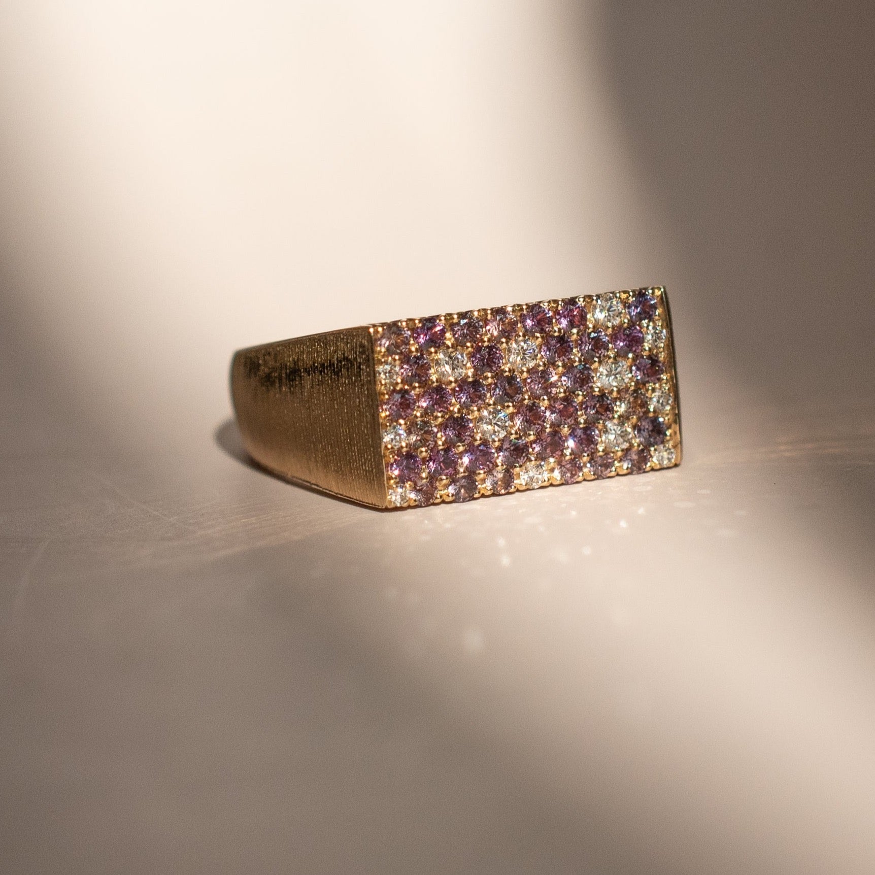 Materials- 14k yellow gold, 1 carat Color Change Sapphires, and 0.2 carat of Diamonds